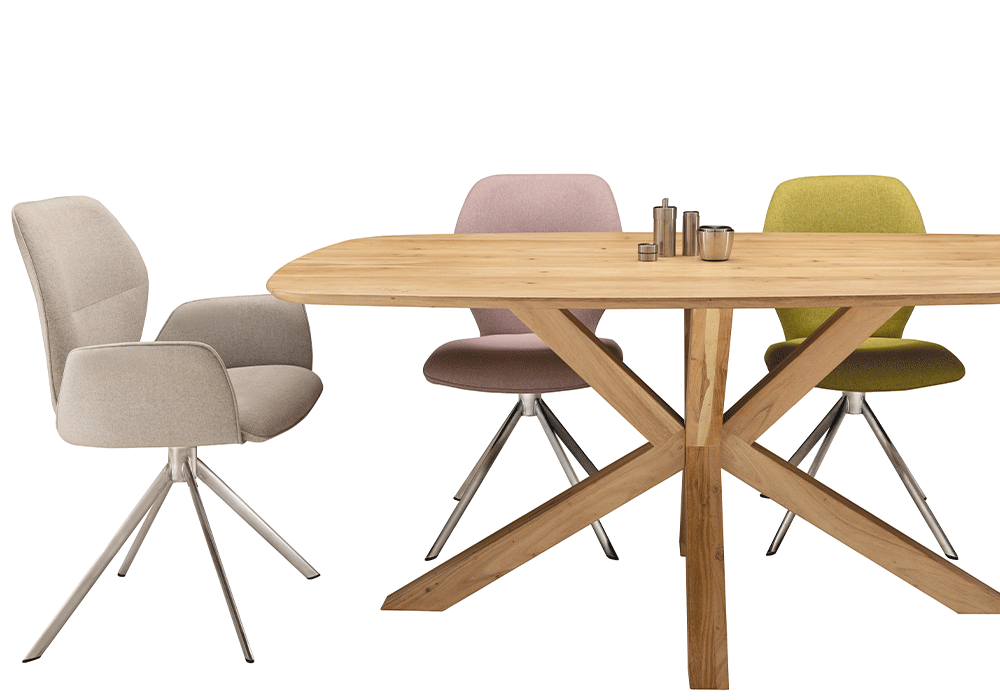 Die gekreuzten Tischbeine setzen einen markanten Akzent, sorgen für Stabilität und verleihen dem Tisch einen modernen Charakter. Ob als Ess- oder Arbeitstisch – der NEW CROSS passt gut in jeden Wohnraum, der zeitloses Design, funktionale Qualität und natürliche Materialien schätzt.